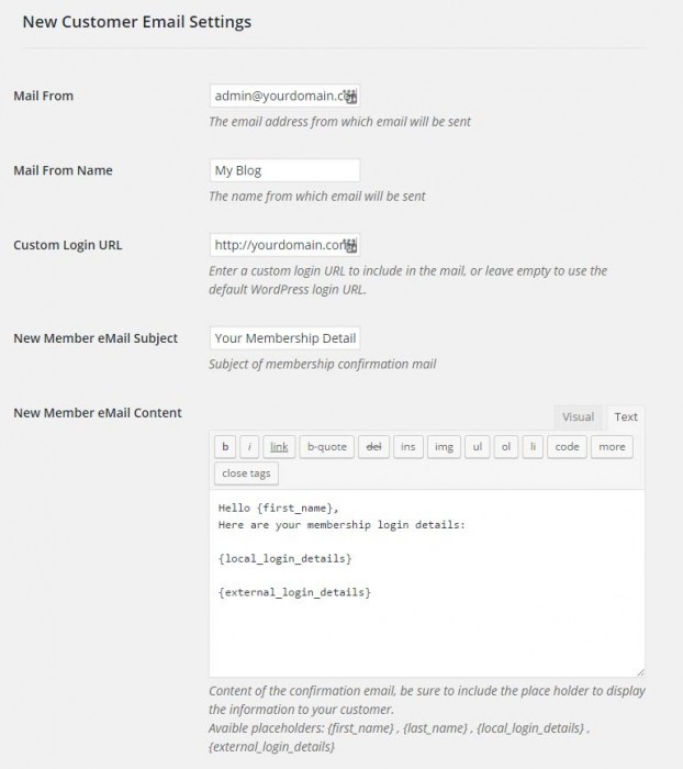 - New Member eMail Subject – The subject of the membership confirmation email