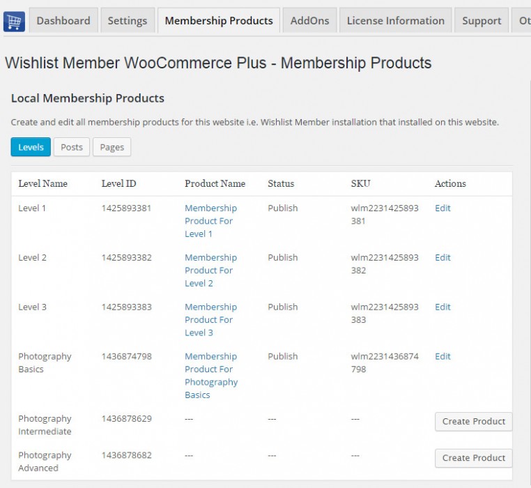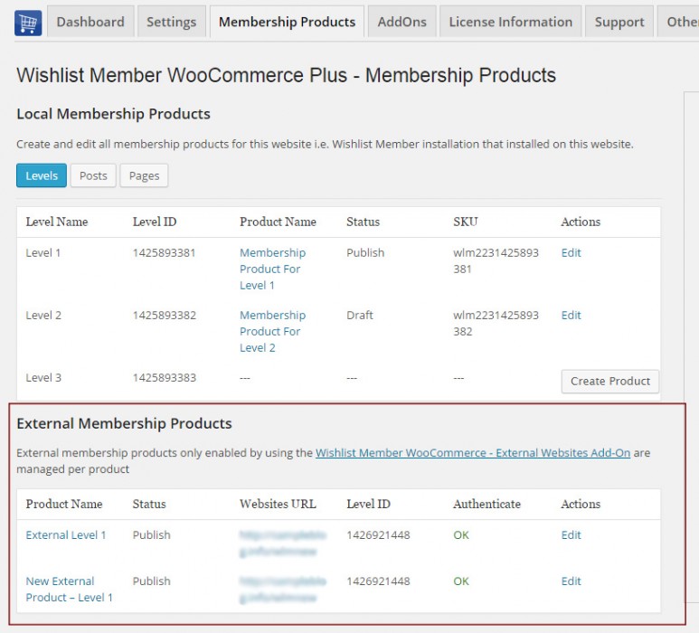 - The External Membership Sites Add-On - The add-on is installed on your WooCommerce store and it collects all the important information about your membership products, including: the membership product name, level ID, status and more, and it allows you to manage all external products from one table
