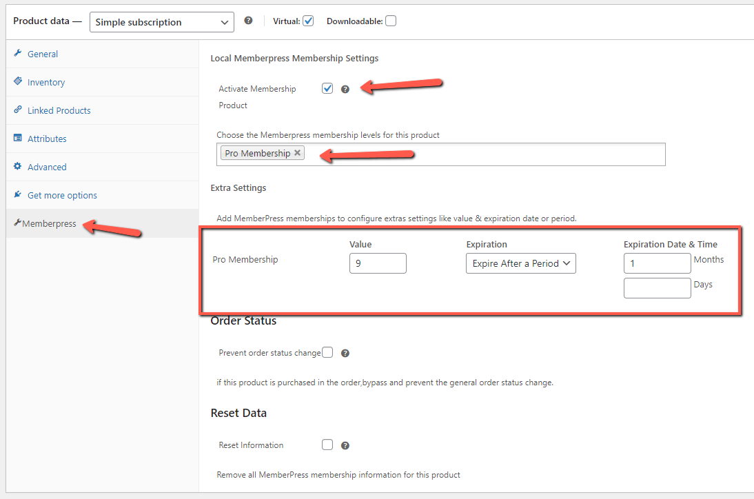 So for a monthly 9 dollars subscription, you need to set the membership to expire after a period of one month.
